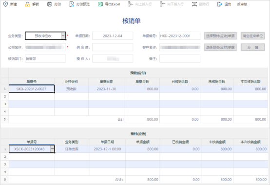 1.4.4. 預(yù)收、核銷單