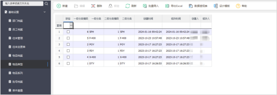物品類型:根據(jù)化纖制造企業(yè)的特點(diǎn),將企業(yè)涉及的物品分成不同的類別,如DTY、POY、FDY等。